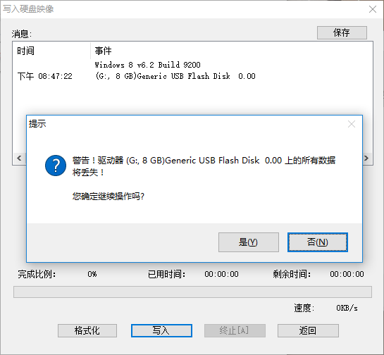 5、会弹出一个警告窗口,告知用户 “ 制作前请务必做好数据备份,否则将会丢失”,请确认USB设备中数据是否另行备份,确认完成后直接点击 “ 是” 按钮,如下图所示: