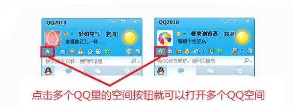 (2)点击QQ里的空间按钮直接打开多个空间。