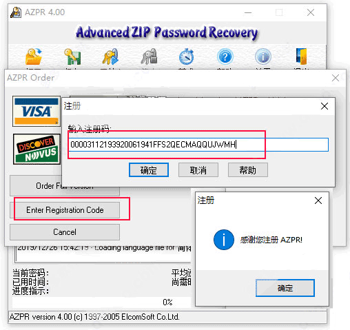 1、下载解压,得到advanced zip password recovery中文版和注册码;