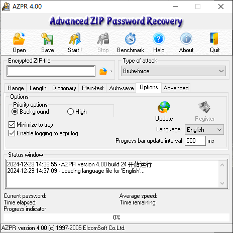 7、加载zip文件后,用户选择攻击方式后,再点击开始即可安装破解;