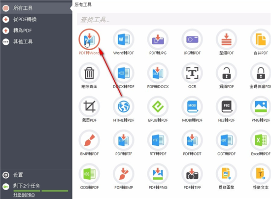 1、首先第一步我们打开软件之后,在软件界面中可以看到有很多的PDF文件处理功能,我们在其中选择自己想要使用的功能点击进去,比如PDF转Word。