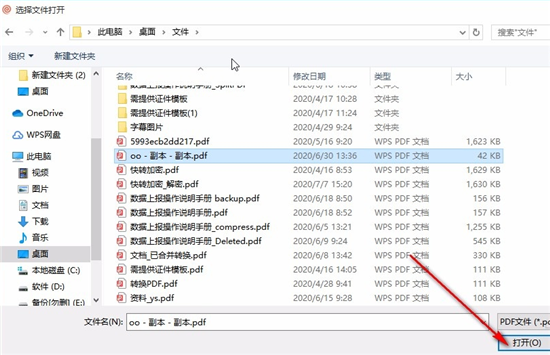 2、点击PDF转Word之后,下一步需要我们对想要转换的PDF文件进行选择,我们选中目标PDF文件之后点击右下角的打开按钮。