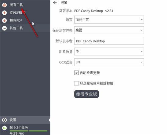 pdf candy desktop怎么切换中文