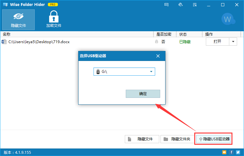 通过点击底部的隐藏文件,隐藏文件夹按钮,然后选择需要隐藏的文件和文件夹,你也可以将需要隐藏的文件或文件夹直接拖拽进来。