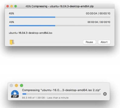 这些图片对支持多核的Bandizip软件压缩能力和仅使用单核的Finder软件压缩能力进行了对比。