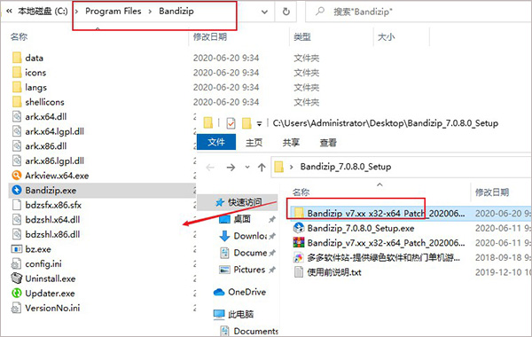 4、将破解文件拖入至软件安装目录中【C:\Program Files\Bandizip】;