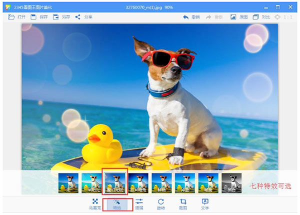 1)在图片美化窗口点击工具栏上的“特效”按钮。