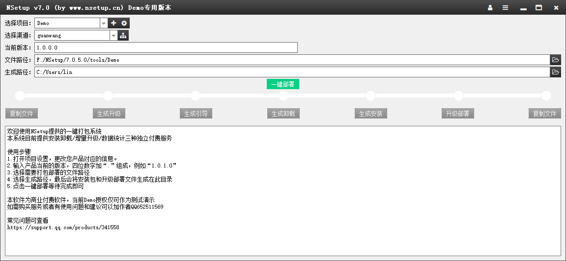 答:客户可以直接购买使用授权,自行开发。NSetup软件已包含一个具体的demo(包含全部脚本源码和资源),可以先根据此开发,测试OK后再来购买授权替换即可。