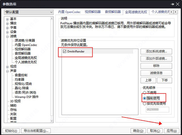 二、使用教程:DmitriRende软件是可以在各播放器软件里激活,这里示范的是potplayer。
