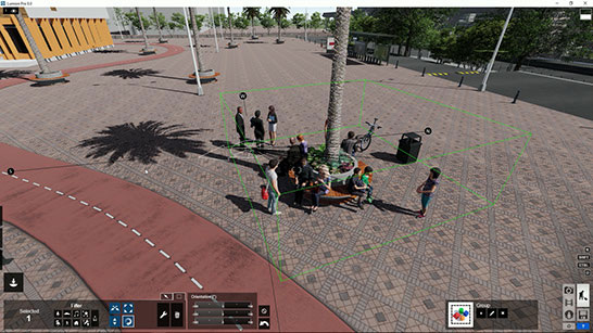 景观设计师欣喜!您可以使用Lumion 8的整体放置功能来瞬间放置大量对象在复杂形状包括曲线中。只需点击几下,就可以在花园设计中沿着蜿蜒曲线种植多种树木。用车铃声起伏的车辆快速填满设计中的环状交叉路口。按住Ctrl,设置角落平滑,您可以整体放置对象到您想要的任何弯曲形状中。