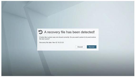 当您的电脑崩溃时,请不要惊慌。在lumion9.0中,您的Lumion文件通过新的自动文件恢复功能被保护得安然无恙,您可以放心。