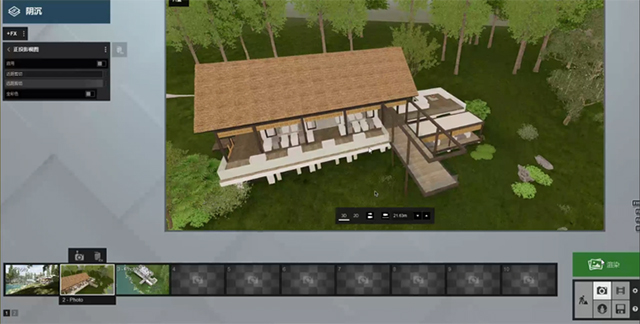 1、这个用处就大了,可以用来做平面图、剖面图、轴透视,这些都可以通过lumion来实现。没打开是正常的小鸟瞰是3D,点到2D的时候,默认打开轴测图。缩放就相当于镜头的缩放,还可以调整位置。