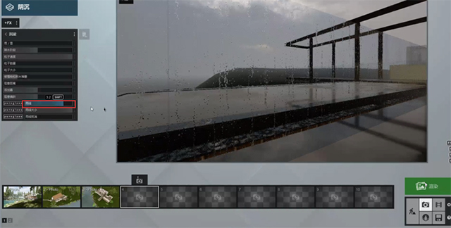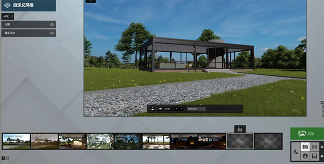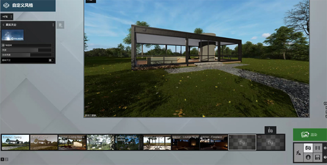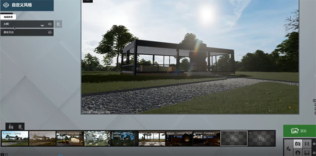 3、在天气里面打开,只能在编辑模式里面。相当于一个HDRI贴图,对于HDRI贴图运用,lumion不能像其他的渲染软件一样加载贴图,只能用自带的这些。