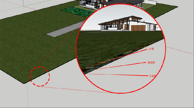 1、写实类型的草地如何去营造呢?可以通过双层或者多层地面(土壤-景观草-三维草)。