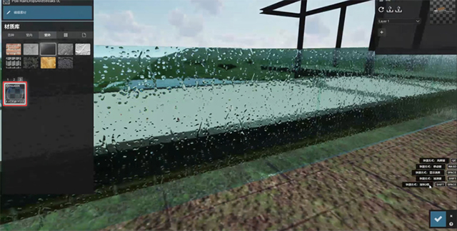 1、室外的雨线如何实现?把玻璃换一个材质就有雨线的效果。