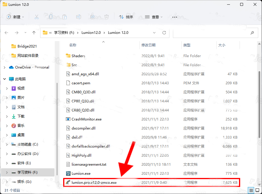 1、下载解压,得到lumion pro 12 64位完整版,将其解压,得到crack激活文件以及setup安装程序;