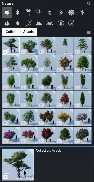 通过 41 种新的精细细节自然物品,包括一系列精致细致的花朵、草茎、杂草、香蒲和其他小植物,您可以捕捉现实生活中风景的饱满和活力。还有处于不同生长阶段的美丽新棕榈树,以及新的针叶树和其他灌木丛。