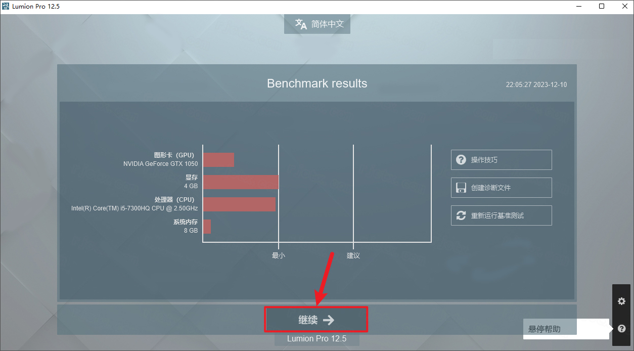 12、点击【继续】,现在可以使用lumion pro 12.5免费版啦。