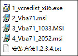 2、安装VBARedist\Release目录下32位的Vba71.msi、Vba71_1033.msi、Vba71_2052.msi三个安装包