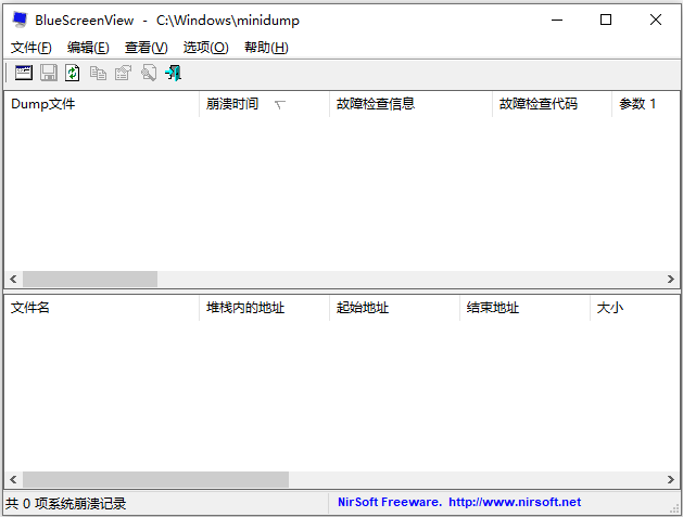 1、自动扫描您当前的minidump文件夹并显示所有故障转储的列表,包括故障转储日期/时间和故障详细信息。