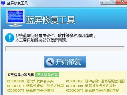 注意:系统蓝屏问题是由硬件、软件多种原因造成的,本款win7蓝屏修复工具只能解决部分蓝屏问题。