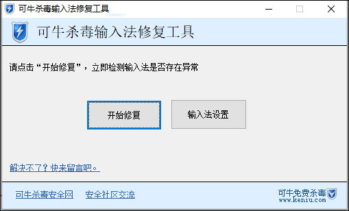 1、如果发现系统中有输入法修复不了,输入法切换不过来以及输入法丢失,损坏等现象立刻使用可牛杀毒输入法修复工具,恢复输入法相关的输入法