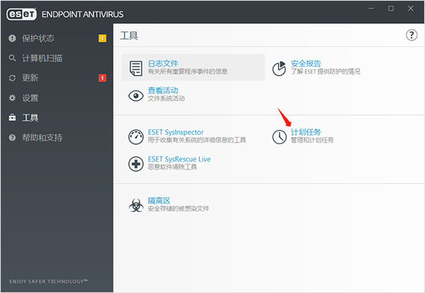 包括实时网络状态监测面板、多种日志格式支持、设备控制报告、RSA envision支持、事件通知器、ESET SysInspector系统诊断工具。