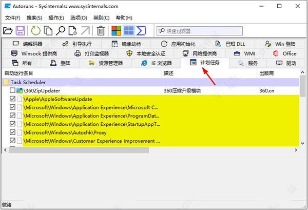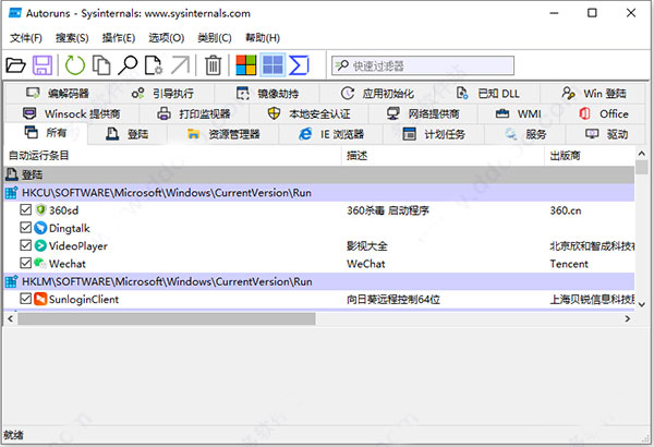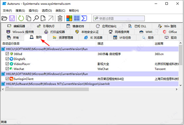 4、经配置后的软件还可显示其他位置,这些位置包括“资源管理器”外壳程序扩展、工具栏、浏览器帮助对象、Winlogon 通知、自动启动服务等等;