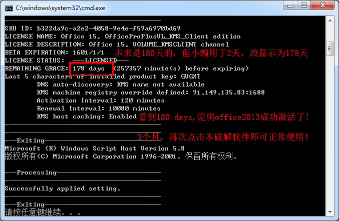 本款Office2013激活工具事实上是采用了kms激活方式而制作的,有效期为180天,能够成功激活Office2013中文专业增强vol版本,也叫批量授权版或大客户版,小编亲测绝对有效,3个月后版本无效时,可再次激活。