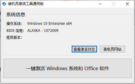 装机员激活工具通用版是出自专业系统站装机员旗下的一款win万能激活工具,能够一键永久激活windows和office工具,支持所有品牌机,组装机,苹果机,虚拟机,支持所有Windows系统版本、所有OFFICE软件等操作,具有功能强大,操作简单,性能稳定,绿色无毒等特点,且使用该工具激活后的win系统,无论是win7、win8,还是win10都可以和正版一样自动更新,通过微软正版验证,是您电脑运行的好帮手,欢迎需要的朋友下载体验!