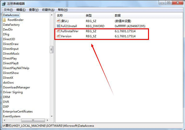 2.依次在注册表HKEY_LOCAL_MACHINE/SOFTWARE/Microsoft/DataAccess路径下找到如下图红色框框内的2个文件