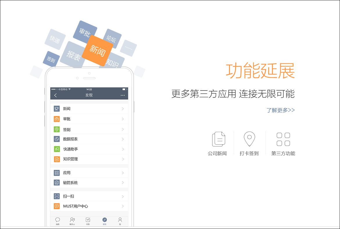 -第三方功能:与企业现有办公软件无缝对接,构建企业移动平台