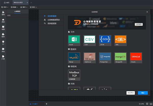 在打开一个新建空白项目时,会自动跳出连接数据页面。