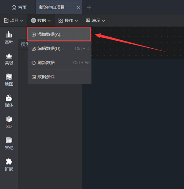 也可以通过点击数据菜单中的“添加数据”打开该页面。