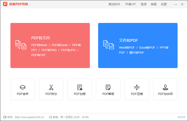 能让你省心省时,奇客PDF转换提供几乎所有的PDF转换工具,您可以使用它进行PDF合并,分割,压缩,加密、解密、添加水印等,相信软件可以帮助您更好地管理PDF文件。