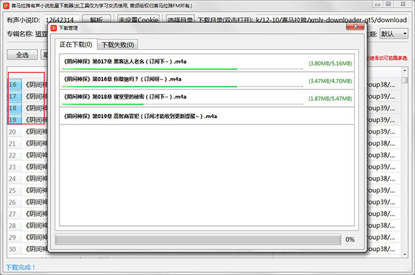 8、ok,以上就是喜马拉雅批量下载器详细使用教程啦。