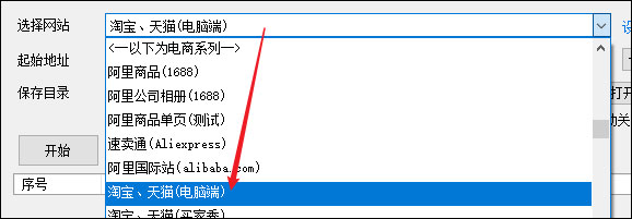 点击选择网站下拉框,在电商系列条目下,找到 淘宝、天猫(电脑端),选择它。