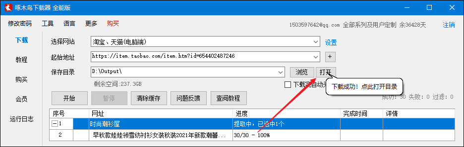 等待提取完毕后,软件会提示下载成功。点软件操作区的打开按钮,就可以查看到已下载的图片了,