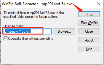 3、小编以64位为例,双击exe文件解压出驱动程序,解压路径默认为【c:\temp\r71357cn】