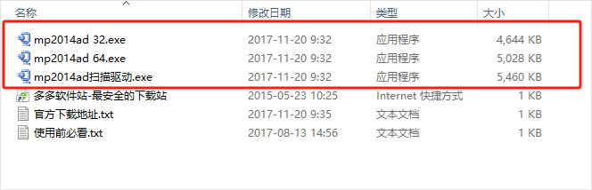 1、下载解压,得到32位和64位的理光mp2014ad扫描驱动和打印驱动程序;