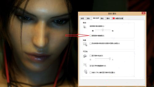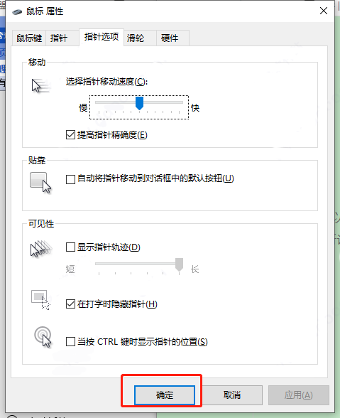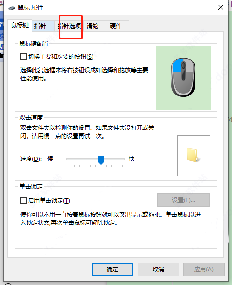 5、在鼠标属性中,切换到“指针选项”,如下图所示。