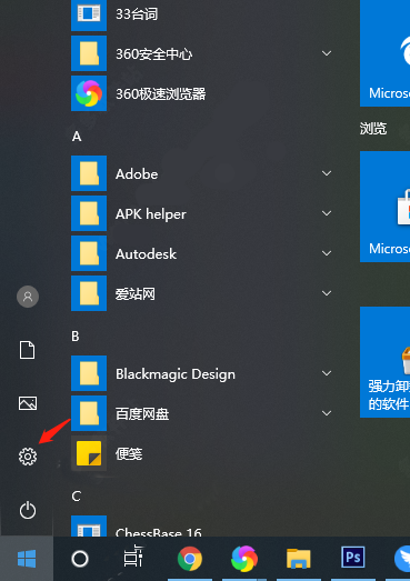 1、首先我们在点击左下角开始按钮打开开始菜单,然后点击设置;如下图所示。