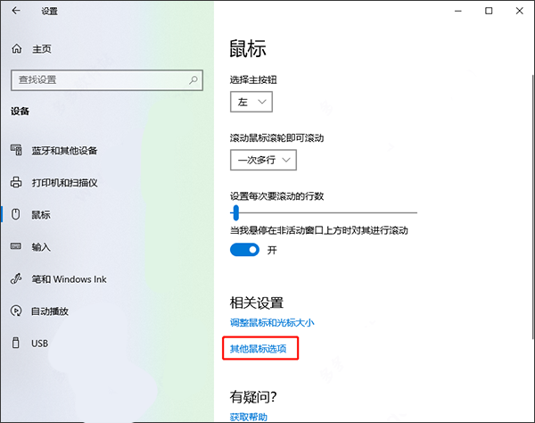 4、点击鼠标选项以后,然后在右侧点击“其他鼠标选项”,如下图所示;