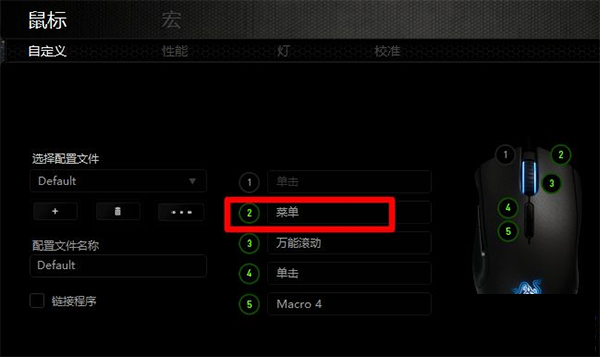 4、用户安装此驱动后可以设置鼠标的性能、灯光和校准。