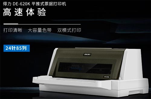 得力de-620k是一款平推式票据打印机,以可靠的整机性能,方便的产品设计和完善的售后服务,全方位满足用户的税票打印需求。这里小编带来的是得力de-620k打印机驱动下载,能够适用于32位和64位的winxp/win7/win10/win8/vista等系统,可以轻松解决打印机不能识别、无法打印等问题,欢迎有需要的朋友免费下载。