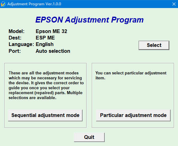 爱普生me33清零软件具体操作步骤: