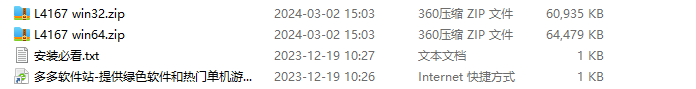 1、下载解压缩,得到32位和64位的epson l4167打印机驱动程序;