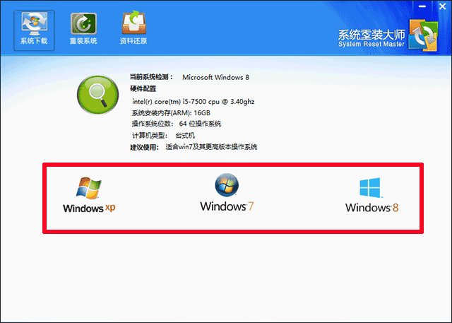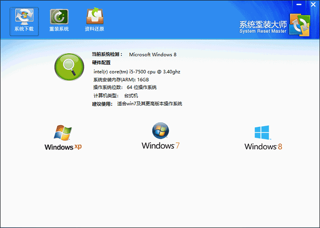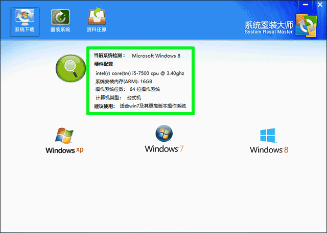 智能检测电脑配置,根据当前电脑配置为您推荐 最佳系统,让您的电脑发挥最佳状态!