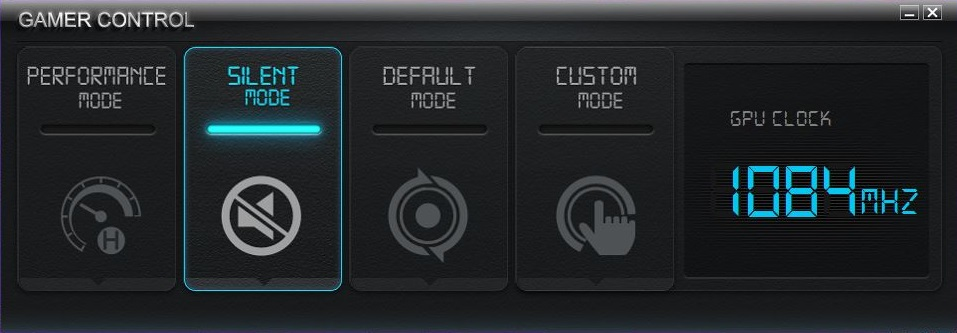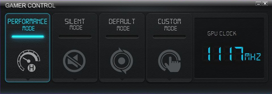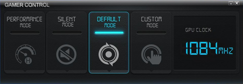打开影驰gamer control软件后我们可以看到只有四个模式供我们选择而且全是英文怎么办呢,不要急。