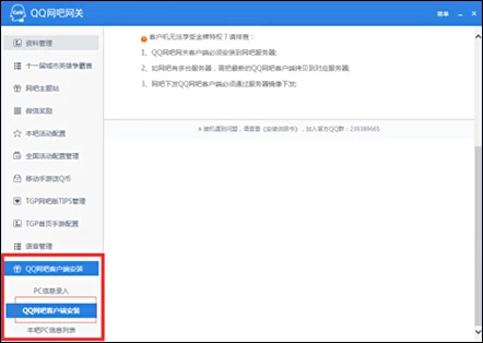 (1) 运行QQ网吧网关,点击左侧菜单:QQ网吧客户端安装-->QQ网吧客户端安装: